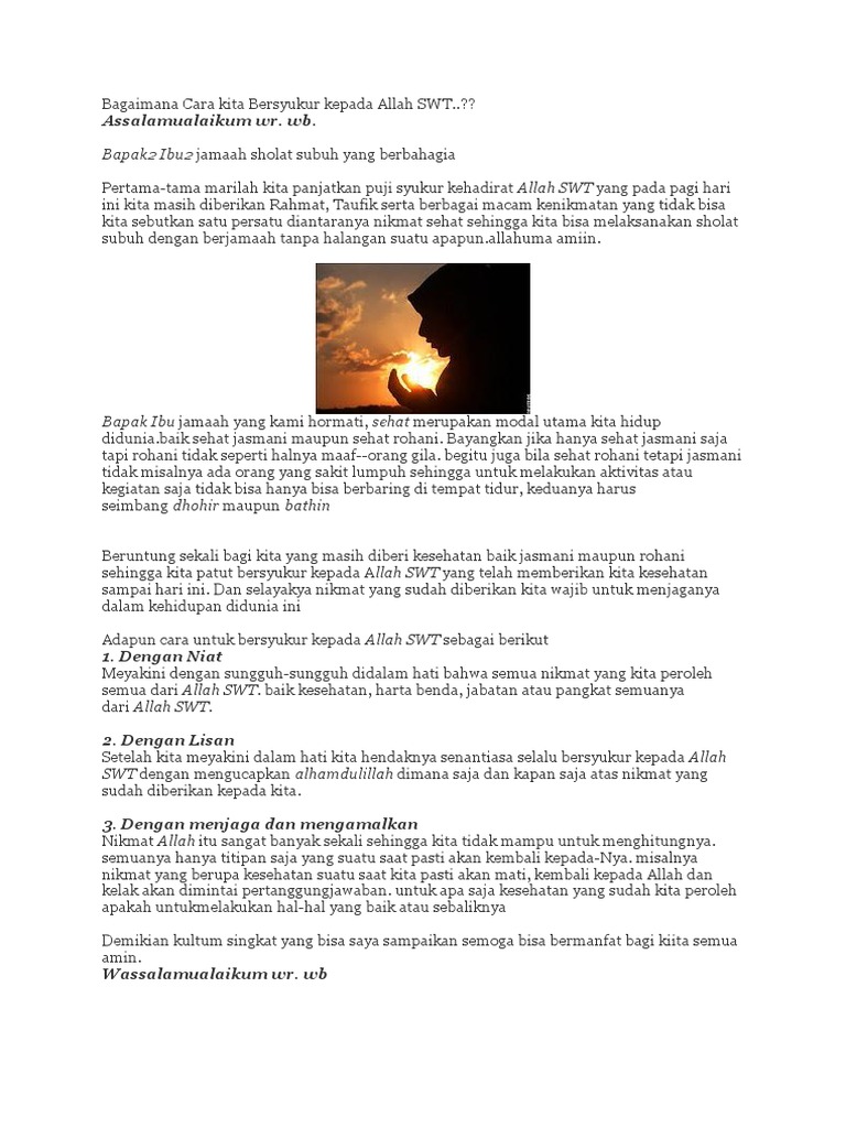Cara Bersyukur Kepada Allah / Cara Bersyukur Kepada Allah : Yang dapat mamikos tuliskan dalam artikel kali ini.. Cara bersyukur kepada allah, tingkatkan ibadah maka hidup akan semakin berkah khutbah jumat di masjid hkl, jumat (25/6/2021) menghadirkan tgk h ridhwan ibrahim sebagai khatib dan iman tgk tm abduh sebagai imam. Kita harus tunduk kepada yehuwa karena dia adalah pencipta kita. Mar 25, 2019 · nah, itu tadi ulasan sedikit seputar info pemilu 2019, cara pindah tps pemilu 2019! Jun 19, 2017 · dan bersyukurlah kepada allah jika memang hanya dia yang kamu sembah. imam al ghazali menerangkan bahwa bersyukur kepada allah dapat dilakukan dengan empat cara yaitu seperti dikutip dari buku amalan pembuka rezeki tulisan karya haris priyatna, lisdy rahayu. Karena dengan berdoa kepadanya berarti hamba tidak melupakan keberadaan antara dirinya dan tuhannya.